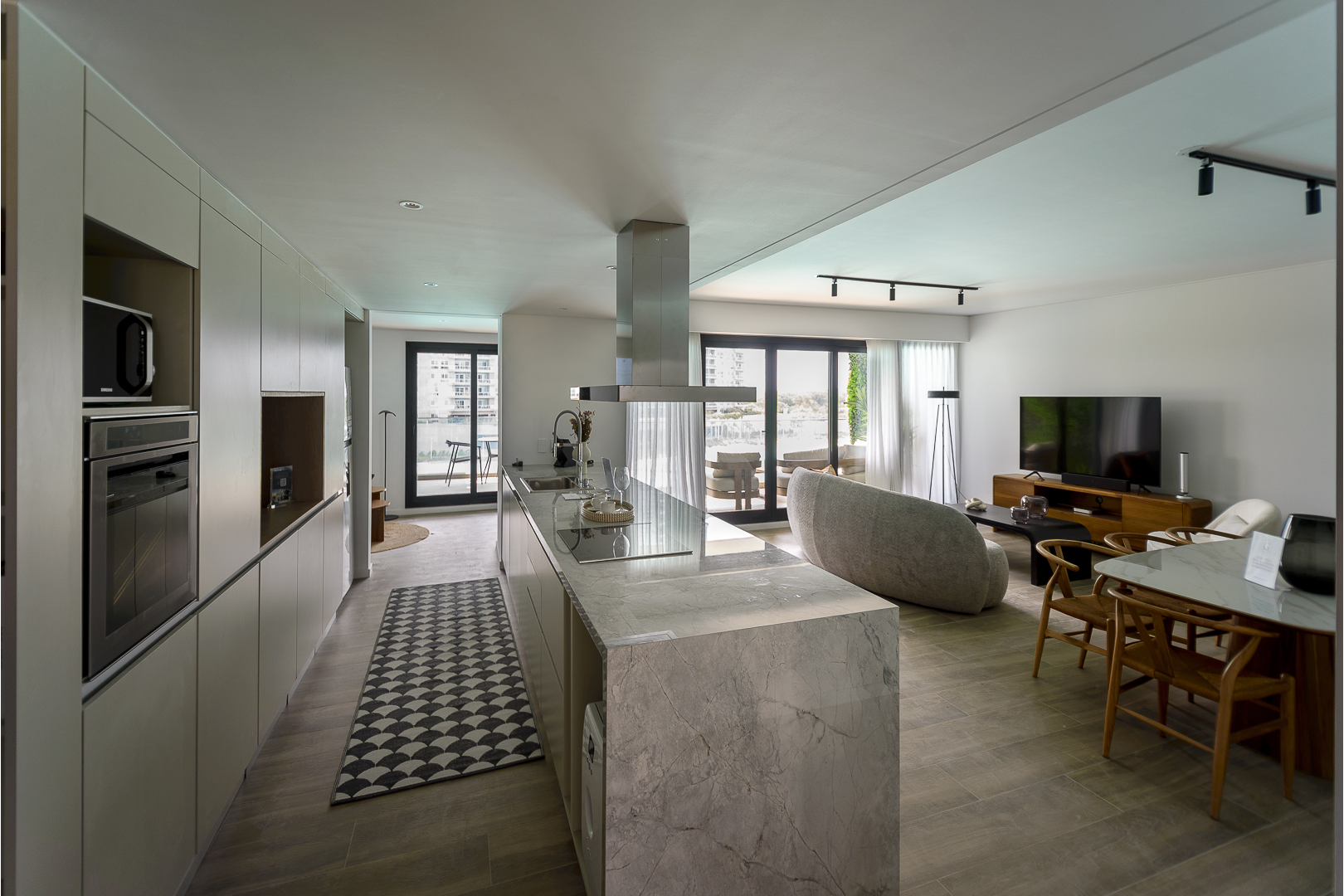 The Árboris Project consists of two housing blocks and a base closely linked to the perimeter walkway around the lagoon and its beach. The blocks will have a ground floor and 7 floors, comprising a total of 122 apartments ranging from 1 to 3 bedrooms. The sizes of these apartments vary from approximately 70 m² to 160 m².